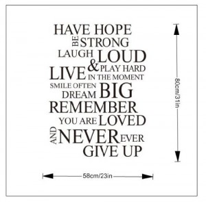 Es ist ein einfach zu bedienendes und kreative Art und Weise die Persönlichkeit, um Charme hinzu zu jeden Raum! Beschriftung ist kreativ zu transformieren in einem einzigartigen stlylish apace.To Anwendung Ihren Lieblingsspruch direkt an Sie Wände werden Sie kreative tägliche Inspiration mit abeautiful hartTha Wandaufkleber ist von guter Qualität PVC-Material.