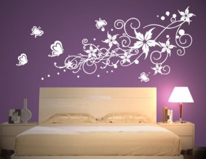 Wandtattoo wandaufkleber Aufkleber Wandsticker wall sticker Wohnzimmer Schlafzimmer Kinderzimmer Ranke Blume Blumen Blumenranke Blumeranke Vine Flower Butterfly floral 30 Farben zur Wahl wpf40 (010 weiss, Größe3:ca.180x85cm)